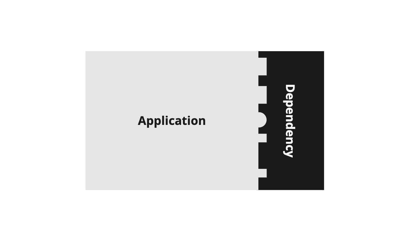The jagged line between the Application box and the Dependency box represents the uniqe shape of the dependency's interface. It shows how we can easily tailor our app to fit the dependency's needs.