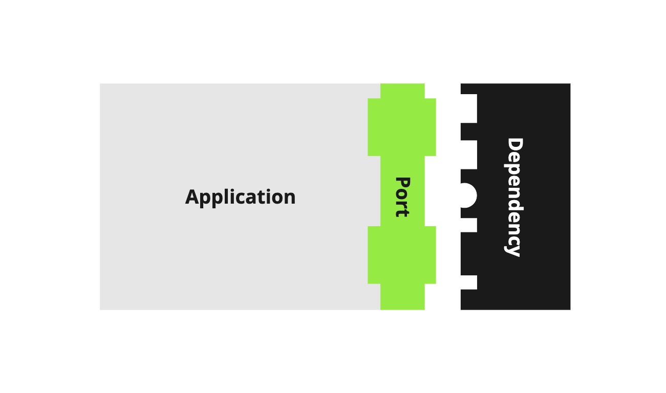 What we'd like to do is create a standard interface that our application code can depend on, removing all of the dependency-specific nonsense from our app. That's exactly what a port is. It's an interface through which we'd like our app to communicate with the outside world.
